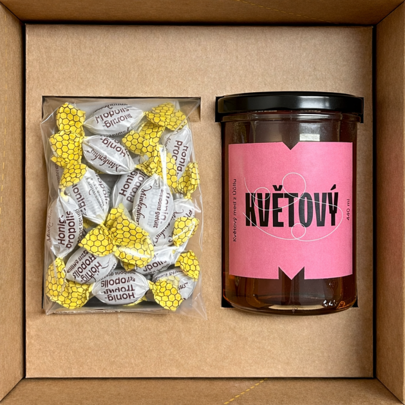 Darujte chuť přírody, která léčí. Tento balíček spojuje jemný květový med z našich včel a oblíbené medové bonbony s propolisem – přírodní antibiotikum v praktické podobě. Skvělé jako milý dárek pro rodiče, prarodiče, kolegy nebo přátele, kteří si potrpí na kvalitu, zdraví a poctivou chuť.