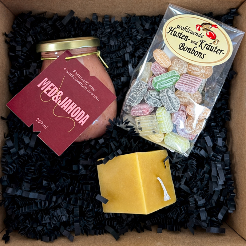 Hledáte dárek, který potěší smysly i srdce? Tohle balení je jako malý dotek přírody – voní po medu, jahodách a včelím vosku. Je v něm ukrytá krása tradice, zdraví i ruční práce, která zahřeje na duši i na těle.