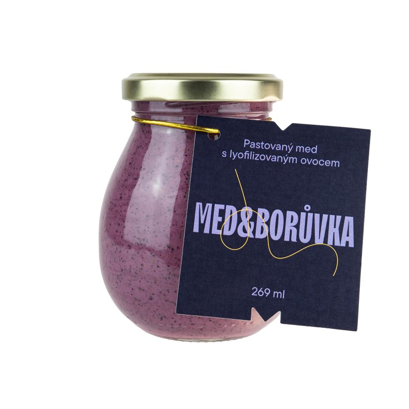 Do tohoto hladkého základu jsme přimíchali mrazem sušené borůvky, které jsou šetrně nadrcené, aby si zachovaly svou přirozenou chuť a bohaté aroma. Díky nim med obsahuje drobné kousky borůvek, které přidávají texturu a příjemnou ovocnou svěžest. Borůvky navíc dodávají medu lehký nádech své typické barvy a jedinečné lesní vůně, která vás okamžitě přenese do borového háje.