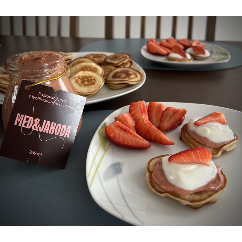 Květový pastovaný med s jahodami! Tento exkluzivní produkt spojuje to nejlepší z přírody – krémovou jemnost důkladně zpastovaného medu a lahodnou chuť mrazem sušených jahod. Výsledkem je dokonalá harmonie, která vás uchvátí svou chutí i vůní.