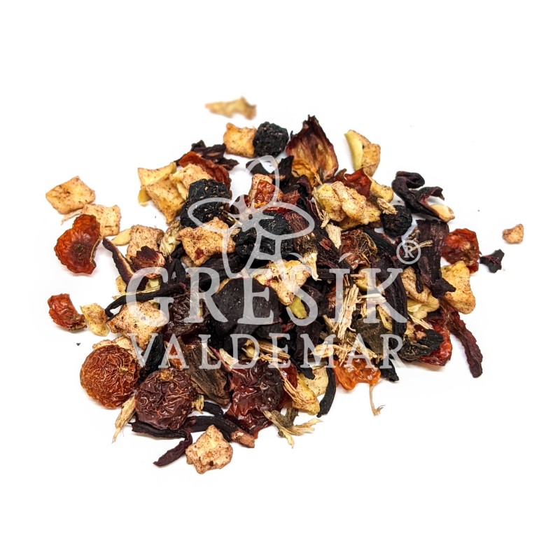 Složení: ibišek súd. květ, růže šípková češule 22 %, plod jabloně domácí, třapatka nachová kořen 15 %, aronie plod 11 %, přírodní aroma