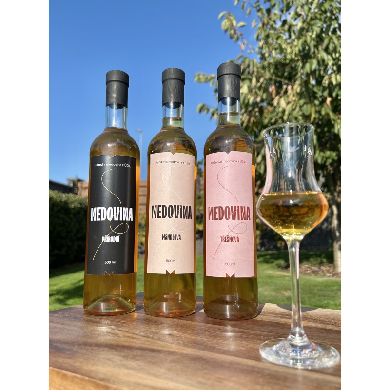 Mandlová medovina: je jemný nápoj plný vůně a chuti. Medovina je vyráběna s maximálním důrazem na kvalitu – kvašení probíhá za studena, což zachovává plnou sílu medu a jemné bylinné tóny. Na rozdíl od běžných medovin není tato dolihovaná, což jí propůjčuje autentický charakter a čistotu chuti.